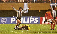 Argentine-Perou. Match arbitré par le Français Robert "Bob" Wurtz, le foufou de service. Dernier match de poule du second tour pour les deux équipes. Si les Péruviens sont déjà à la rue (battus par le Brésil 3-0 et la Pologne 1-0), il reste une chance aux Argentins d'accéder à la finale. Pour cela, il faut qu'ils l'emportent par quatre buts d'écarts pour passer devant les Brésiliens qui ont une meilleure différence de buts au classement. Autant dire que ça va pas être coton pour les Gauchos. Simplement, ce jour-là, l'Argentine va rentrer comme dans du beurre par temps de canicule dans une défense péruvienne un rien nonchalante durant ce match. A la mi-temps, les joueurs de Menotti ont déjà fait la moitié du chemin en menant 2-0. En seconde période, c'est un festival pour l'Albiceleste. En même pas une demi-heure, l'Argentine inscrit quatre nouveaux buts et torche le Pérou sévèrement en un set blanc. Que des aces dans le gamelle. Le Brésil est ainsi éliminé sans avoir perdu de match lors de cette coupe du monde et l'Argentine atteint son objectif, la finale. Reste que ce match demeure une énigme, notamment du côté de la Seleçao qui accuse l'équipe péruvienne d'avoir été complice de son élimination. A tort ou à raison ??? Pour Coutinho, l'entraîneur brésilien, il ne fait aucun doute et pour lui " la sélection péruvienne a perdu plus qu'un match, elle a perdu son prestige international ". Les journaux brésiliens n'y vont pas non plus par le dos de la cuillère : " vol' , " la honte du football mondial "... Tout le monde est furax au pays. Sauf Pelé qui affirme que le Brésil doit s'estimer heureux de jouer une petite finale car elle ne mérite pas plus. Et bah là, tout le monde ferme sa gueule d'un coup !!! Purée Pelé, quand il cause, attention hein...