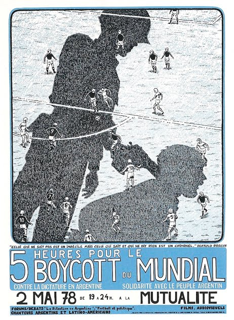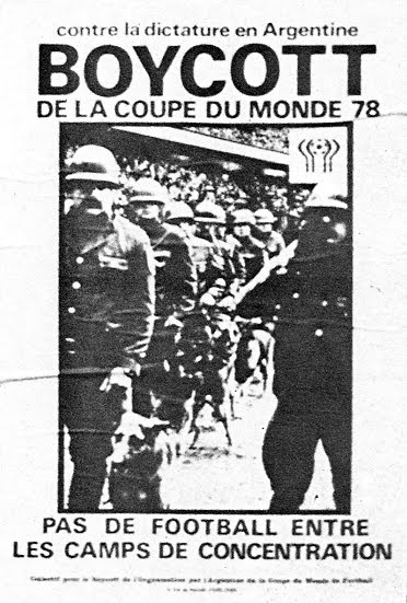Tous ces mouvements en Europe principalement, et dans le monde à moindre échelle, provoquent des remous en Argentine. D'abord parce que le comité d'organisation au mondial a connu toutes les galères pour arriver à ses fins (retard dans les travaux d'agrandissement des stades, assassinat du président du comité de coordination du mondial 78, un pote au salopard de Videla en fait, un pays économiquement en ruine...). Mais surtout, les opposants au dictateur aux lunettes sombres ne souhaitent absolument pas ce boycott, car le mondial 78 est aussi et avant tout " leur " mondial. Leur mot d'ordre est simple : " Venez en Argentine, observez ce qui se passe et témoignez ! ". Tout le monde acquiesce alors et accepte de se rendre en Argentine pour quelques semaines de sport. Les opposants emprisonnés connaissent cependant aussi leur moment de "sport" durant la compétition. Mais finalement à leur retour, peu (voir pas du tout) de joueurs témoigneront de ce qu'il ont vu là-bas. Peut-être à cause des hôtels de luxe mis à leurs dispositions, loin, très loin des geôles secrètes de l'armée du général Videla...