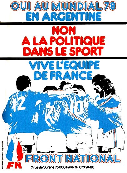 En France, même combat. Certains intellectuels et artistes s'indignent de la présence du onze tricolore dans un pays fasciste. Platini, Bathenay et consorts sont taxés d'ignorants aveugles et égoïstes par les intellos du pays. Les comités de soutien au boycott s'organisent et cherchent un écho à leur combat. Réunions, manifestations, meetings et tribunes libres dans les journaux (notamment Le Monde). Le COBA (Comité pour le Boycottage de la Copue du Monde) et le " Comité de Soutien aux Luttes pour le Peuple Argentin " s'activent pour freiner les ardeurs d'une qualification française pour une coupe du Monde, acquise sur le terrain, une compétition par ailleurs à laquelle elle n'a plus participé depuis 1966. C'était en Angleterre. Et Cantona voyait le jour. Le sélectionneur Michel Hidalgo est dans le doute. Les joueur aussi. Mais tous adoptent le discours des Suédois sur la valeur et le rôle du sportif dans la société moderne. Ils promettent même d'alerter l'état argentin sur la situation des Français disparus dans ce pays, et de tout mettre en oeuvre pour avoir des réponses claires et précises. Si le boycott provient essentiellement des gens de gauche, tous ne sont pas d'accord sur cette position radicale. Ainsi Georges Marchais pour le Parti Communiste argumente et donne dans la formule. Pour le dirigeant du PC français, si les Bleus refusent de se rendre en Argentine, ces derniers risquent de ne plus bien aller nulle part en regardant la situation politique de certains pays à l'Est comme à l'Ouest, voir dans le monde entier par ailleurs. Le FN prend aussi une position favorable au Mundial. Mais bon comme c'est leurs potes qui dirigent le pays là-bas, rien d'anormal entre collègues. Les joueurs estiment être pris en otage par cette situation où tout le monde à tout ou rien à dire. Michel Hidalgo précise même qu'il respectera le choix politique de chaque joueur dans le cadre de sa sélection, et offre une belle part de responsabilité à chacun de ses gars en short. Ceux qui veulent rester en France peuvent le faire, tandis que ceux qui désirent être du voyage pourront juger par eux-mêmes de la situation. Voilà le message pour résumer. Un discours pas au goût de tout le monde. Le sélectionneur des Bleus est même victime d'une tentative d'enlèvement, sous la menace d'une arme, pas très loin de chez lui, par un membre d'un groupe favorable au boycott. Il se bat avec son ravisseur, récupère le flingue et porte plainte dans la foulée. Quelques heures après cette péripétie, il est dans le Concorde qui emmène la délégation française en Argentine...