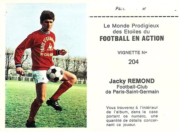Le footing jonglé. Déjà c'est pas français ton truc alors fait pas ton malin ! Pourtant Jacky Remond exécute ce geste en parfaite harmonie avec le ballon. Une jambe après l'autre, en petite foulée, et en cadence. Un geste accompli en deux temps pas fait pour les amateurs, au risque de se casser la gueule par terre et se coller la honte devant ses partenaires. Avec un joli haut de survêtement pour l'occasion, juste pour être too much sur la photo. Dommage qu'il s'appelle Jacky quoi, ça gâche un peu le truc...