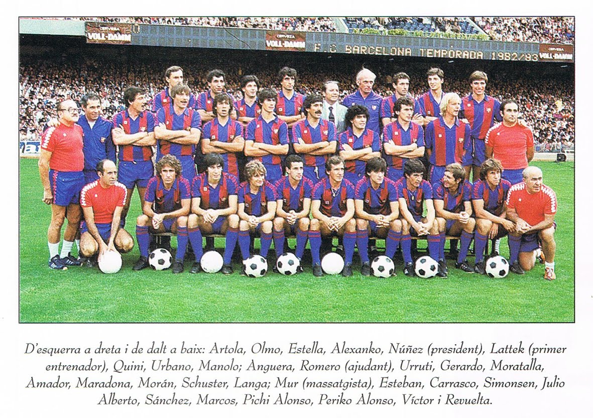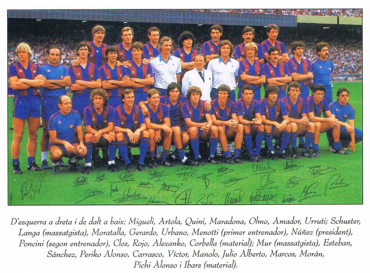 Maradona signe à Barcelone et le jeune Aulas à gauche est content. Mais qu'est-ce qu'il fout là celui-ci ?