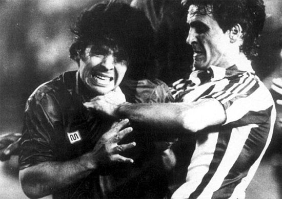 Quand il signe à Barcelone au début de l'exercice 1982-83, Diego Maradona ne s'imagine pas un seul instant qu'il va passer un sale quart d'heure en Espagne! L'Argentin est victime des rugueux défenseurs Ibères qui savatent sévère à toute époque de l'année, et pas seulement quand il y a de la neige. Deux saisons à prendre des coups ou se faire étrangler. Des matches qui se terminent parfois en pugilat ou en règlements de compte. Pauvre Pibe de Oro, pour qui le championnat d'Espagne rime souvent avec castagne et football avec torgnoles. La Liga, c'est pour les judokas. Du coup pour oublier les rixes avec ses adversaires, Diego aime se réfugier chez lui avec sa maman qui en profite pour parcourir Don Balon après avoir préparé un maté au fiston qu'il sirote avec délice en pensant au pays un rien nostalgique. Un peu de tendresse quoi bordel !