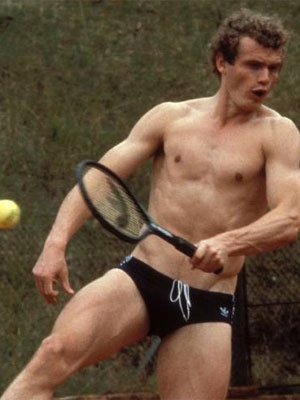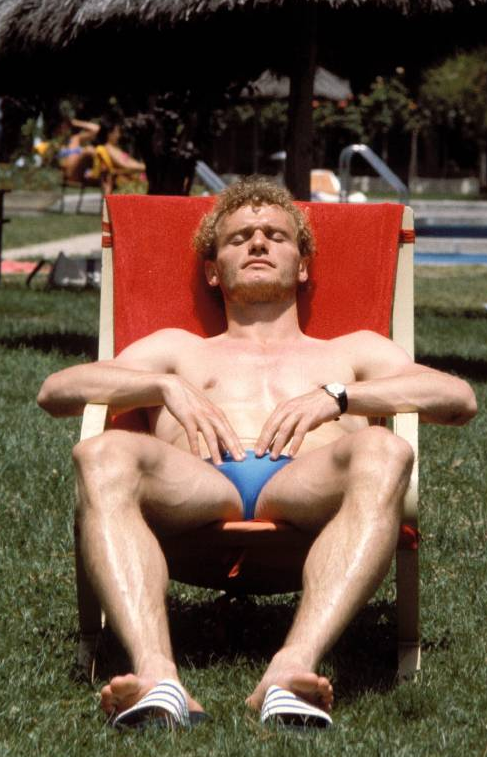 Hans Peter Briegel côté cours de tennis. Du physique qui en impose et un style tout en puissance. Un musclor bodybuildé qui joue aux raquettes avec une tapette à mouche - c'est juste une impression - dans une posture à la McEnroe. Juste la posture parce que question finesse et élégance. Bref. En maillot de bain pour compléter le tableau et l'effet GI Joe qui se détend en vacances en frappant comme une mule dans la petite balle jaune. « Prends-ça dans la gueule Jimmy Connors. Et après je m'occuperais des tibias des tarlouzes du Calcio. Déjà j'vais commencer par écraser le ballon avec ma main gauche pour leur montrer qui je suis à ces lopettes ». Le romantisme à l'allemande dans la ville de Roméo et Juliette. Une telle dépense d'énergie vaut bien quelques instants de repos au soleil. Pour reprendre des forces et être prêt à en découdre à la pétanque. Bah là, ça craint vraiment. Heuseusement quand même qu'il était pas gardien de but sinon Battiston serait encore entrain de chercher ses dents sur la pelouse.